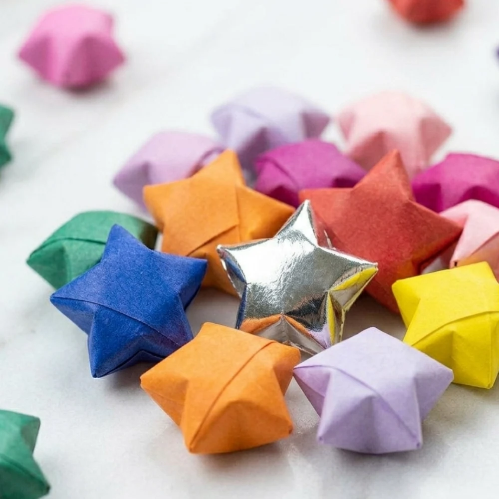 As famosas estrelas da sorte em origami, também chamadas de “wishing stars”, são pequenas peças tridimensionais feitas a partir de tiras de papel. Além de enfeitarem potes, cartões e lembrancinhas, elas carregam significado: presentear alguém com um pote recheado de estrelas costuma simbolizar amor, desejo de boa sorte e proteção. A quantidade de estrelas pode transmitir mensagens específicas — por exemplo, 1 estrela para um pensamento especial, 10 para demonstrar carinho, e 365 para desejar sorte ao longo de um ano.